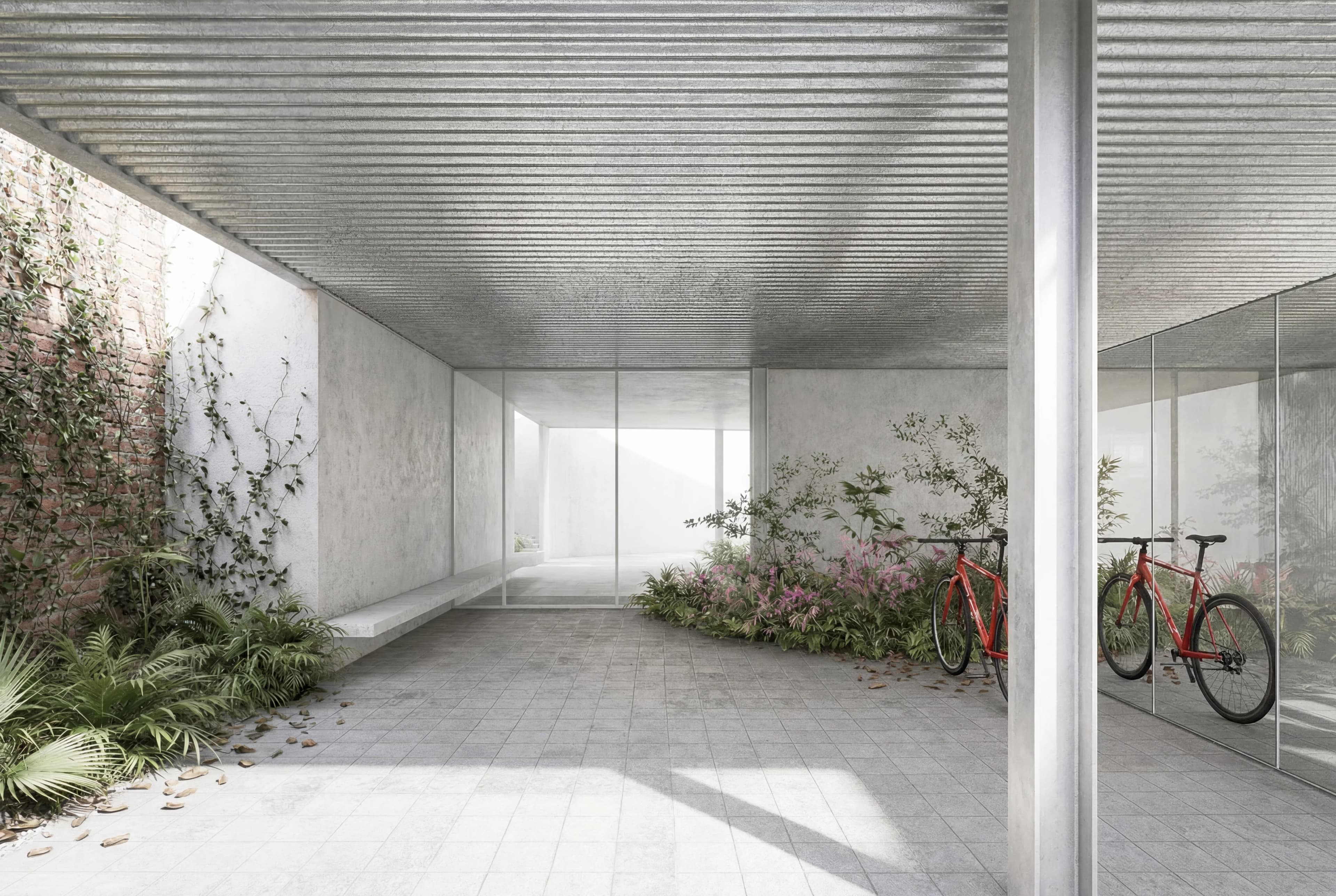 2024El proyecto se implanta en una parcela de dimensiones críticas y geometría irregular frente al Parque Saavedra. Con una profundidad que oscila entre los 8,50 y los 13 metros, el terreno impuso el desafío de resolver un programa doméstico compacto, reinterpretando simultáneamente el vínculo de la vivienda con el espacio exterior. La estrategia morfológica fue apilar el programa en una serie de plantas cuadradas de 8,50 x 8,50 metros sobre el sector regular, dejando la parte irregular como un vacío que actúa como fuelle entre la línea oficial y la construcción. En la planta baja, la propuesta apuesta por la continuidad espacial. Un solado que se extiende desde la vereda, alternado con sectores de vegetación, cualifica la procesión de acceso hacia el núcleo de circulación vertical. Esta planta libre asume una condición programática híbrida: funciona como expansión natural, taller exterior y cochera eventual, priorizando la flexibilidad de uso a nivel de calle. La organización interna se estructura a través de una escalera lineal posicionada estratégicamente para optimizar la superficie útil en todos los niveles. El primer piso se reserva para el área privada, alojando los dormitorios en un esquema de máxima eficiencia. Por su parte, el segundo nivel contiene el espacio social, el cual establece una conexión fluida con el último piso. Allí, la propuesta culmina en un espacio de encuentro y una terraza que aprovecha las vistas extendidas hacia el parque, protegida por una pérgola que define el remate del edificio. La fachada se resuelve mediante una síntesis de bandas horizontales que cubren los grandes aventanamientos. Este sistema de cerramiento cumple múltiples funciones: unifica la lectura visual del conjunto, oculta técnicamente antepechos y barandas, garantiza la seguridad y cubre el retiro superior, consolidando una imagen de abstracción frente al paisaje urbano.