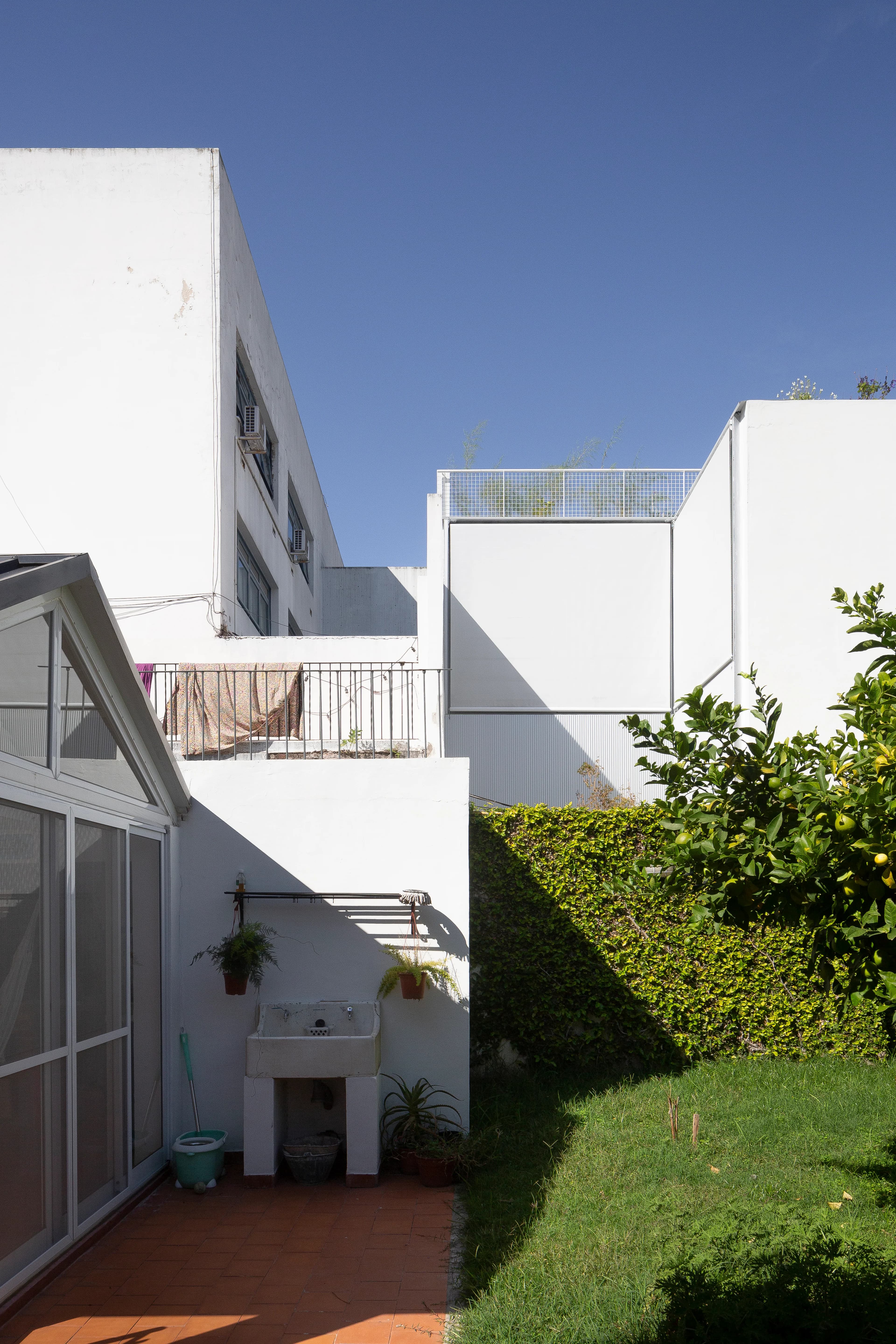 2022La “casa Chorizo” es una tipología tradicional surgida en Buenos Aires a finales del siglo XIX. Esta tipología se caracteriza por una sucesión de habitaciones consecutivas a lo largo de un patio longitudinal. Durante la década del 30 y 40 se permitía edificar en la totalidad del terreno y junto con la especulación inmobiliaria los lotes se sobredensificaron, con construcciones pequeñas relegadas a los centros de manzana, expuestas a malas condiciones de iluminación y ventilación. El proyecto trabaja sobre una de estas viviendas, adaptándola a las necesidades de una familia joven, garantizando condiciones de habitabilidad y explorando nuevas formas de habitar el centro de manzana. Las intervención se estructura en tres operaciones, retirar la cubierta rebatible de un patio existente orientado al norte, demoler un pequeño entrepiso para reubicar la circulación vertical y construir una nueva cubierta plana para alojar el programa privado de la vivienda. El programa principal se organiza en torno al nuevo patio, garantizando óptimas condiciones de iluminación y ventilación, mientras el servicio y la circulación vertical se acomodan en la medianera opuesta. La circulación vertical resuelta a través de una escalera de chapa microperforada tamiza la luz proveniente de un techo móvil de vidrio por el que se accede a la terraza. El patio explora la transición entre lo público y lo privado, el interior y el exterior, mientras que la terraza plana, con su jardín de plantas nativas explora una nueva forma de habitar el exterior en el pulmón de manzana.