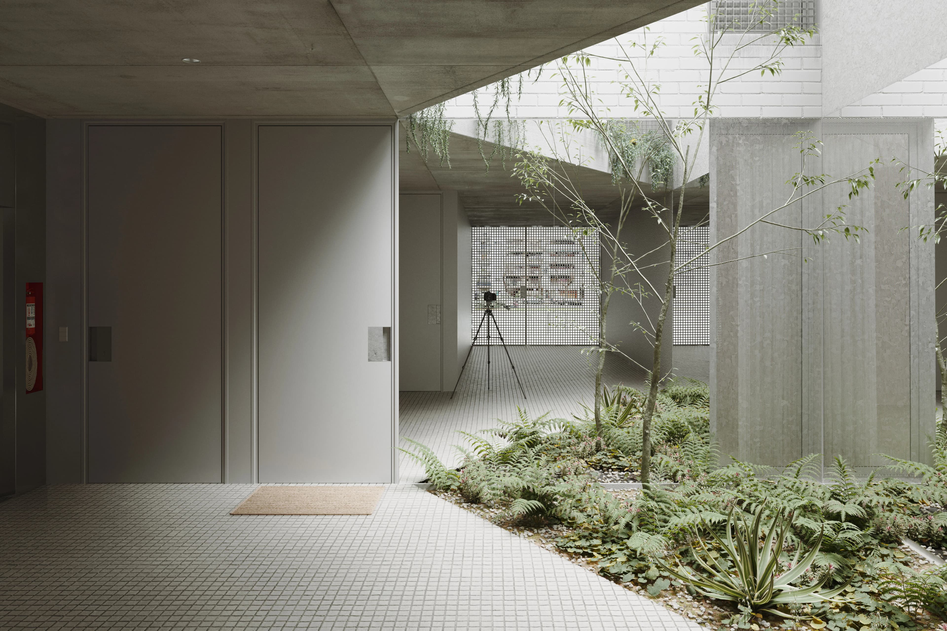 2025Emplazado en el tejido consolidado de Villa Crespo, el proyecto surge como una respuesta directa a las lógicas del nuevo Código Urbanístico. Al abandonar el histórico sistema de Factor de Ocupación Total (FOT), la propuesta se encuadra bajo el criterio de completar el volumen máximo edificable, asumiendo el desafío de conciliar la rentabilidad del mercado con una resolución espacial eficiente. La morfología resultante se articula mediante la incorporación de un patio que fragmenta el edificio en dos cuerpos simétricos. Este vacío no solo aloja el núcleo de circulación vertical abierta, sino que optimiza la iluminación y ventilación de las unidades de mayor profundidad. En cuanto a la organización programática, las unidades se estructuran en torno a un núcleo de servicios calibrado en posición y dimensiones. Esta configuración estratégica otorga una flexibilidad técnica que permite múltiples subdivisiones por planta —desde monoambientes hasta tipologías de tres ambientes—, y unidades tipo dúplex que aprovechan el retiro obligatorio de la normativa. La fachada se resuelve mediante una composición de nueve vanos alineados, de muros gruesos de ladrillo visto y carpinterías rehundidas sin particiones interiores que den indicio de cómo se accionan. Esta abstracción de la fachada es una respuesta directa a la versatilidad del núcleo y a la ausencia del programa definido. El único rastro de ritmo lo aportan los balcones, cuyos sutiles desplazamientos advierten, sin definir, las posibles configuraciones del interior. Finalmente, el proyecto renuncia a la búsqueda de una innovación material o formal disruptiva, optando por integrarse con sobriedad al paisaje de la ciudad de balcones y ventanas.