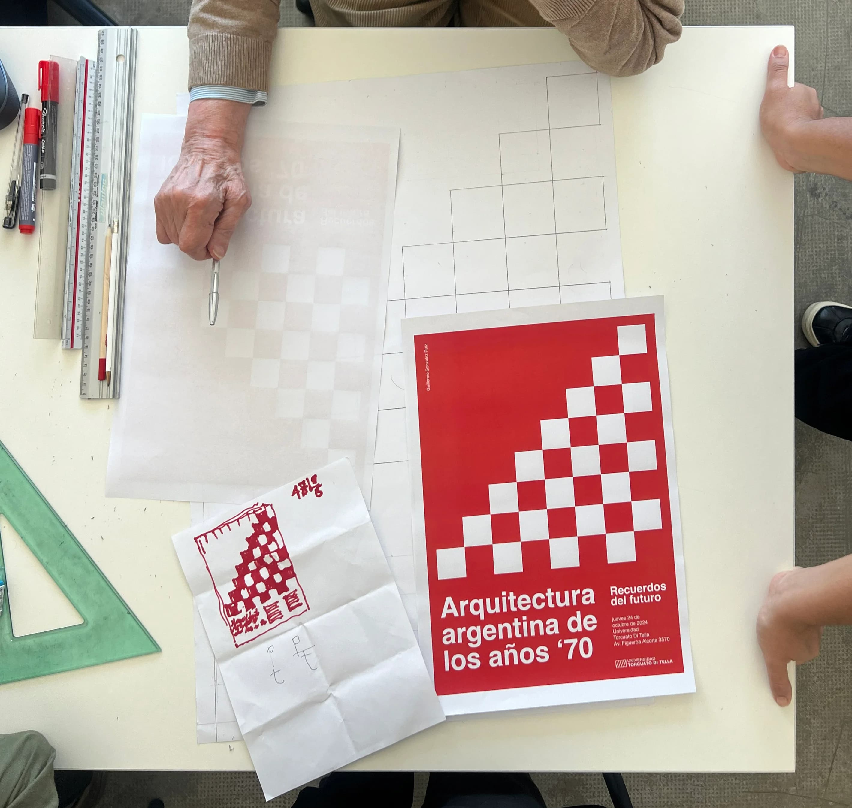 2024Recuerdos del Futuro presenta una serie de proyectos construidos durante la década del setenta en distintas partes del territorio argentino. La exposición invita a una revisión contemporánea a través de material de archivo inédito, fotografías de la época y objetos de comunicación visual de esos años. A través de estas piezas y documentos, se resalta la innovación arquitectónica de los autores de ese período, estableciendo conexiones entre las soluciones del pasado y los desafíos del presente. La muestra incluye una serie de edificios emblemáticos, tales como las Naves de comercialización del Mercado Central de Buenos Aires (Llauró Urgell arquitectos y asociados), el Plan Municipal de 60 Escuelas para la Ciudad de Buenos Aires (Antonini-Schon-Zemborain, Estudio Kocourek, Raña Veloso-Álvarez-Forster, SEPRA), la Casa Matriz del Banco Ciudad (Manteola, Petchersky, Sánchez Gómez, Santos, Solsona, Viñoly), el Hospital San Vicente de Paúl (Llauró Urgell arquitectos y asociados), el Conjunto Ushuaia (Aftalión, Bischof, Egozcue, Vidal), el Estadio de Mendoza (Manteola, Sánchez Gómez, Santos, Solsona, Viñoly, Tarsitano), la Papelera Koch Polito (Baudizzone, Erbin, Lestard, Varas), la Galería del Siglo (Sujoy, Miller), la sucursal Buenos Aires del Banco de la Provincia de Córdoba (Miguel Ángel Roca), el Centro Administrativo Gubernamental de La Plata (Llauró Urgell Arquitectos, Antonini-Schön-Zemborain Arquitectos), el Hospital Nacional de Pediatría "Profesor Dr. Juan R. Garrahan" (Aftalión, Bischof, Do Porto, Egozcue, Escudero, Vidal), Centro de Producción Buenos Aires – Argentina Televisora Color (Manteola, Sánchez Gómez, Santos, Solsona, Viñoly, Tarsitano). Colaboraciones y préstamos: Archivo Di Tella Arquitectura (Fondo Baudizzone, Díaz, Erbin, Lestard, Trainer, Varas), Fundación IDA Investigación en Diseño Argentino (Fondo Guillermo González Ruiz, Méndez Mosquera, Ricardo Blanco), Archivos Estudio Antonini-Schön-Zemborain, Estudio MSGSSV, Estudio Egozcue Vidal + Pastorino Pozzolo, Juan Manuel Llauró, Estudio Miguel Ángel Roca, Biblioteca Universidad Torcuato Di Tella anexo Arquitectura.